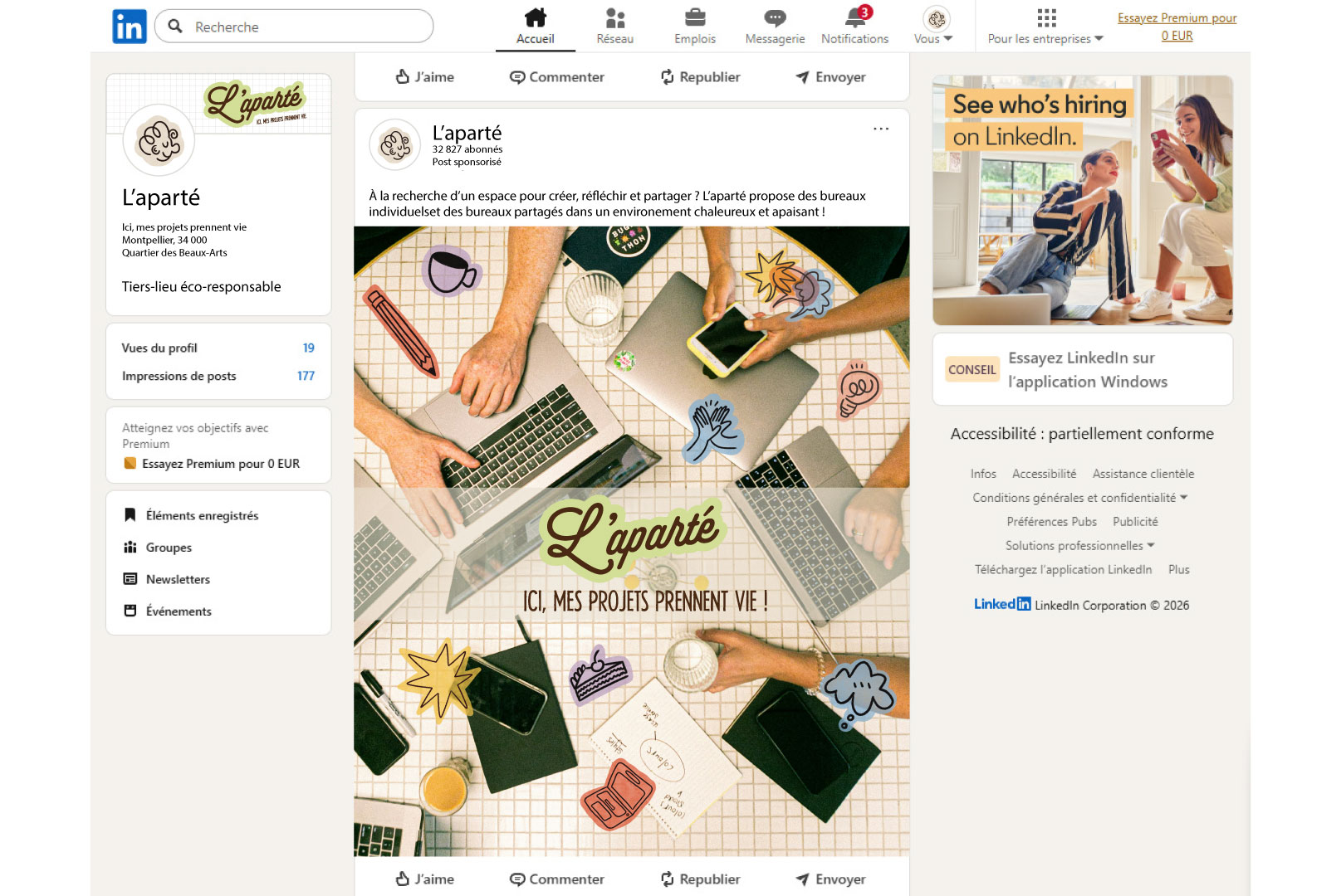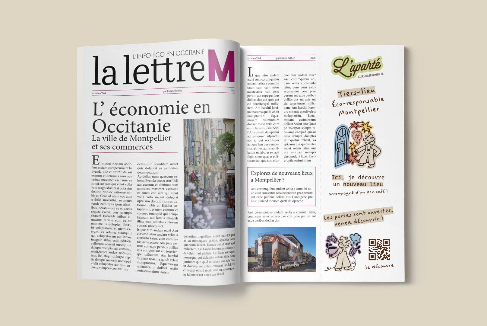 Création d’une identité visuelle complète d’un tiers-lieu culturel et créatif situé au quartier des Beaux-Arts à Montpellier. Le projet vise à créer une communication B to B pour attirer les travailleurs créatifs, freelances, artistes, mais aussi un public plus large. Ce tiers-lieu est un espace social hybride, avec des espaces modulables, un café, des bureaux et une salle polyvalente accueillant des événements, et reflète des valeurs humaines et écoresponsables dans tous ses choix graphiques.
